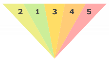 왼쪽부터 오른쪽까지 각 선수의 타격 범위 잠재력에는 1에서 5까지의 등급이 지정됩니다. 이 값은 특정 방향으로 공을 치는 선수의 확률을 나타냅니다. 이 그리드의 숫자는 항상 15가 됩니다. 예를 들어, 이 선수 그리드에는 오른쪽으로 치기 위한 5가 있습니다. 5 / 15 = 1 / 3입니다. 따라서 이 선수는 1/3의 확률로 오른쪽으로 칠 것입니다. 중앙으로 치기 위해 3을 얻었습니다. 3 / 15 = 1 / 5, 이 선수는 중앙으로 약 1/5의 확률로 칠 것입니다.