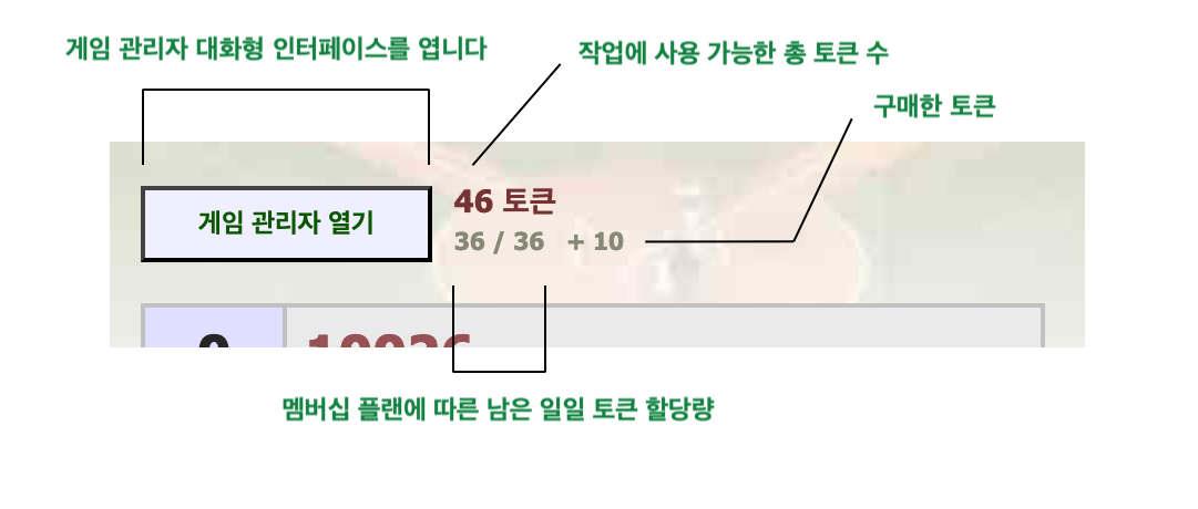 - 구매한 토큰 : 추가 토큰을 구매할 수 있습니다.