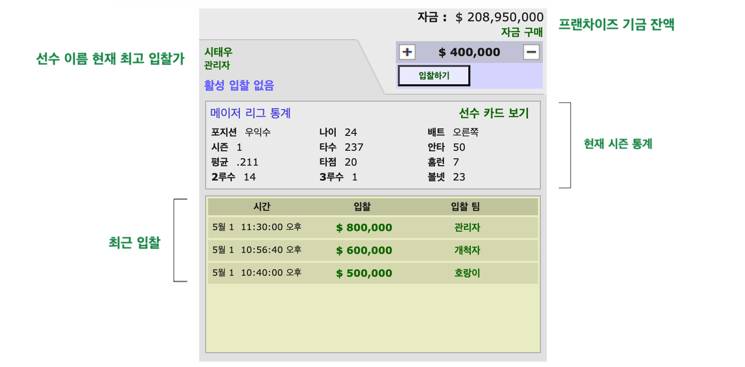시즌이 끝날 때 선수에 대한 가장 높은 입찰을 한 팀이 해당 선수를 얻게 됩니다. 선수는 월드 시리즈 다음 날에 새로운 소속 팀으로 이동됩니다. 이것은 최종화 과정이 진행되는 시점입니다. 새로운 선수는 기본적으로 다음 시즌에 소속 마이너 리그 팀에 추가되거나 선수 대기열에 배치됩니다 (선수 대기열은 팀에 배치할 선수들의 집합체입니다). 이기는 입찰가가 다음 시즌의 선수 연봉이 됩니다. 따라서 이 가격은 다음 시즌 연봉 예산에서 선수 계약의 가치가 됩니다.